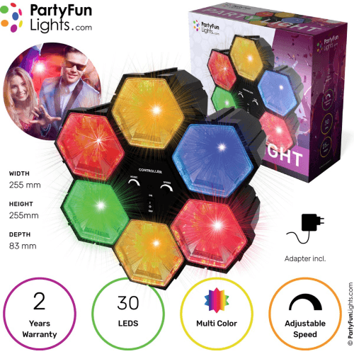 Een feest zonder flitsende sfeerverlichting is haast ondenkbaar. De multicolor lichtorgel heeft zes units met elk een ledlamp, met regelbare flitssnelheid en een ingebouwde microfoon. Deze grappige en leuk ontworpen feestverlichting is van goede kwaliteit, heeft geen ingewikkelde installatie en zorgt voor eindeloos speelplezier. Met de feestelijke sfeerverlichting creëer je een feestelijke sfeer in de kamer of de danszaal, met prachtige effecten op muren en plafond. De zes aangesloten lichtunits zijn handmatig verstelbaar. Naast de snelheid van de knipperfunctie is het ook mogelijk om het effect op het ritme van de muziek in te stellen. De zes ledlampen van elke unit zorgen voor een spectaculair disco-effect. Niet alleen geschikt voor meerdere parties, maar ook als je een eenmalig feestje geeft, want daarna is het ideaal om er de kinderkamer mee te versieren.