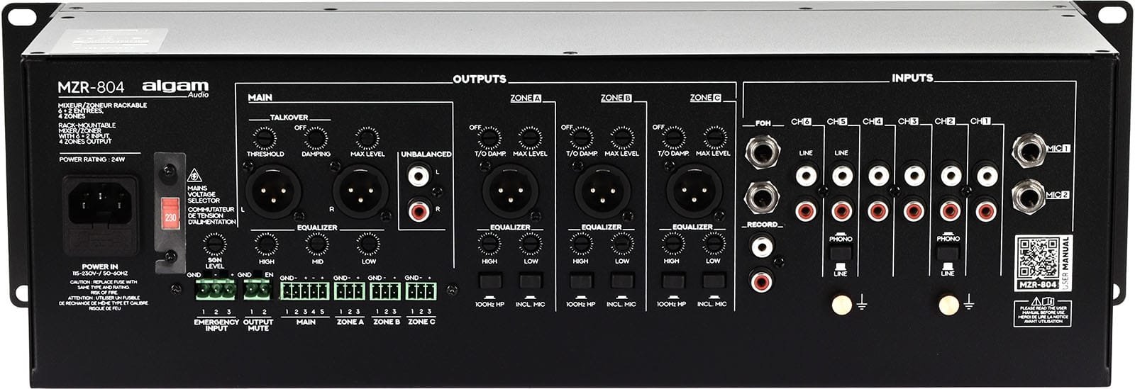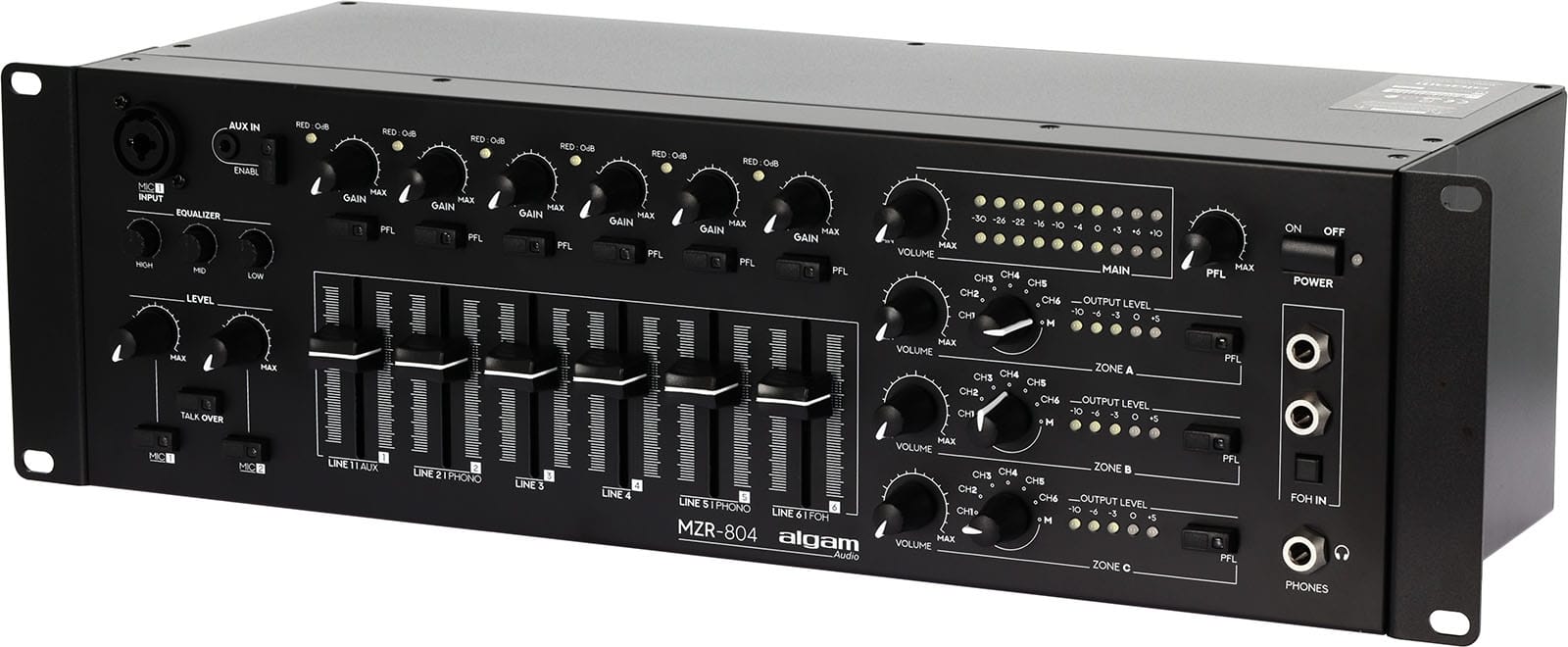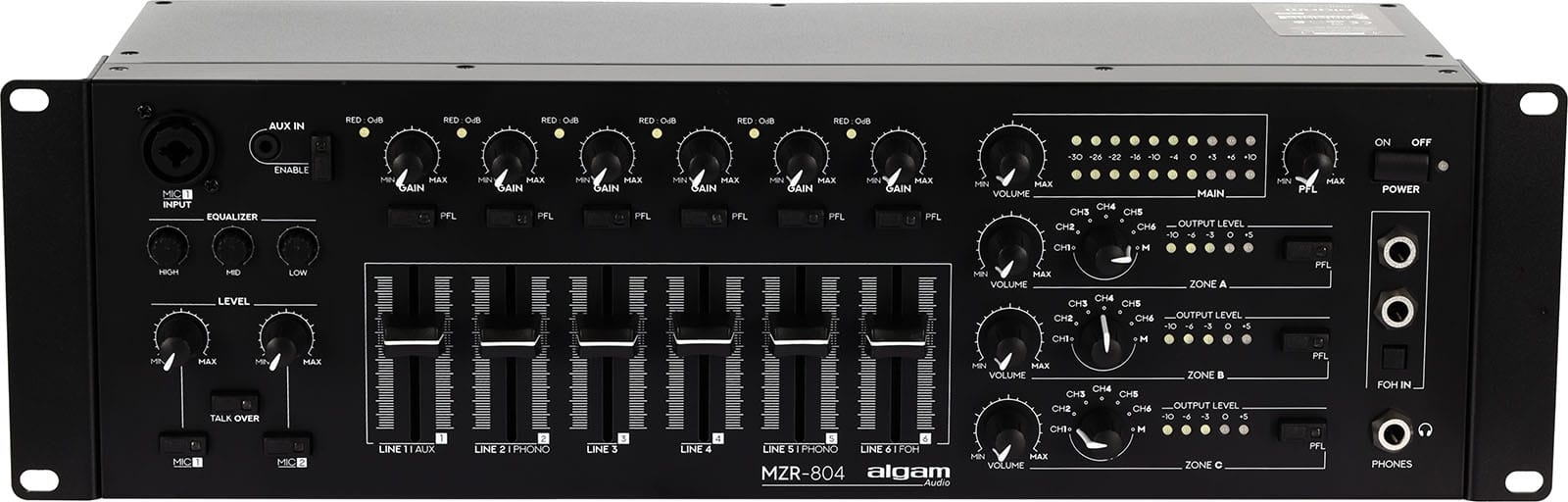 ALGAM AUDIO – SAA MZR-804 4-Zone Mixer-Zoner 6 + 2 Inputs