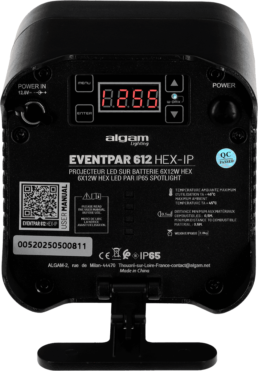 De EVENT PAR 612 HEX IP is ontworpen voor mobiele, probleemloze optredens. Hij biedt tot 20 uur batterijduur in de monokleur- of automatische modus, en ongeveer 4 uur op vol vermogen met alle leds ingeschakeld. Geen ingewikkelde bedrading nodig: de geïntegreerde W-DMX-ontvanger zorgt voor soepele en betrouwbare communicatie op afstand. Een bedieningspaneel met led-display zorgt voor een snelle en eenvoudige installatie, ter plaatse of vóór het evenement.