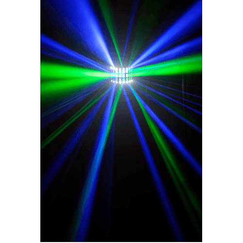 Zijn 4 x 3W RGBW LED’s, gecombineerd met 16 witte LED’s voor het stroboscoop-effect, stellen je in staat om in slechts enkele ogenblikken een feestelijke en kleurrijke sfeer te creëren dankzij de vele geïntegreerde scenario’s, tegen een zeer betaalbare prijs.