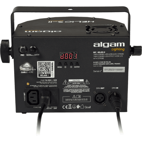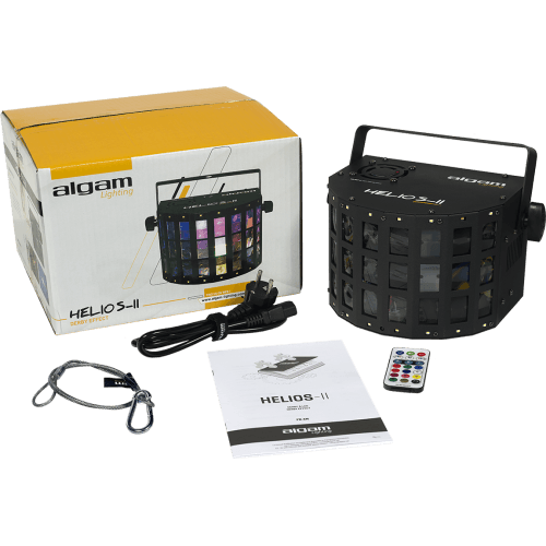 Met zijn 2 automatische bedrijfsmodi -Auto en Auto met muziekdetectie- perfect voor beginners, is de Helios II een dansvloerklassieker die opmerkelijk eenvoudig te gebruiken is, en die ook op afstand bediend kan worden via het DMX-protocol voor meer gepersonaliseerde effecten.
