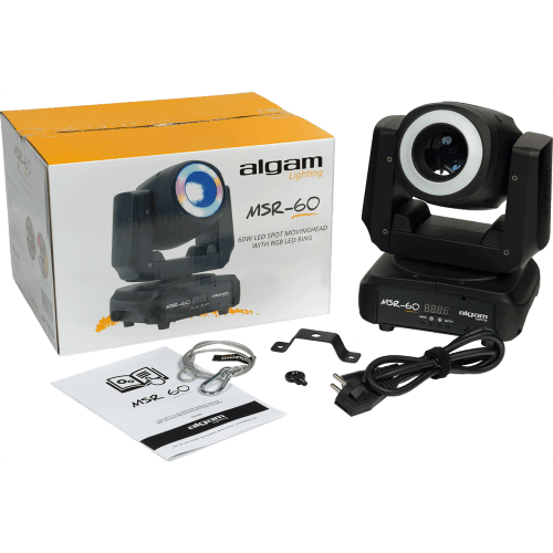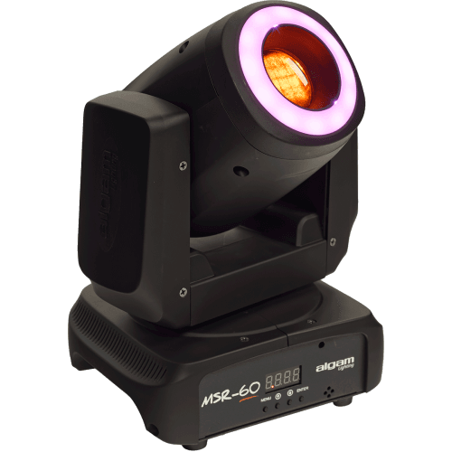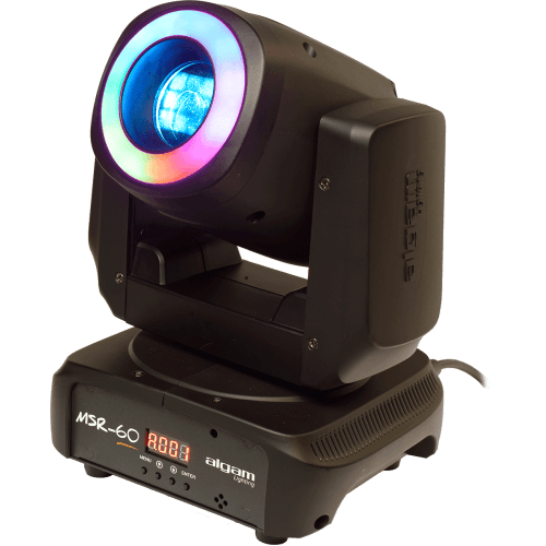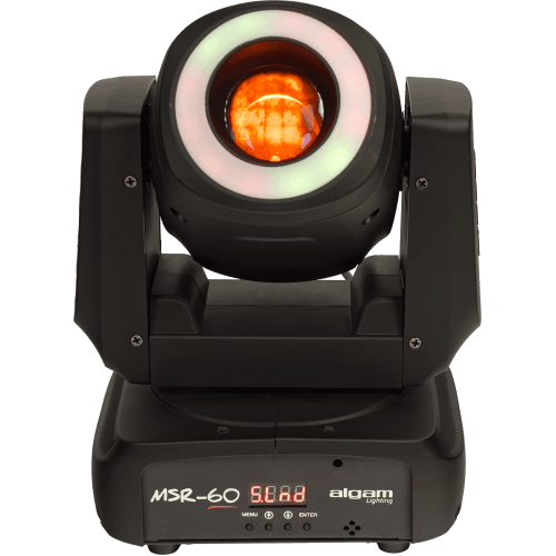 De Algam Lighting MSR-60 LED spot moving head heeft niet alleen een sterke 60 watt led, maar eveneens een led-ring. Deze is uitgevoerd met 12 ledjes van 0,5 watt elk en voegt extra spectaculaire effecten toe.