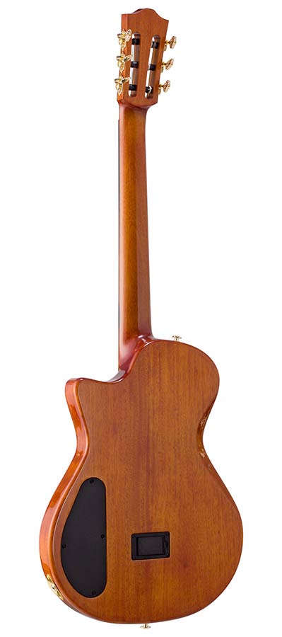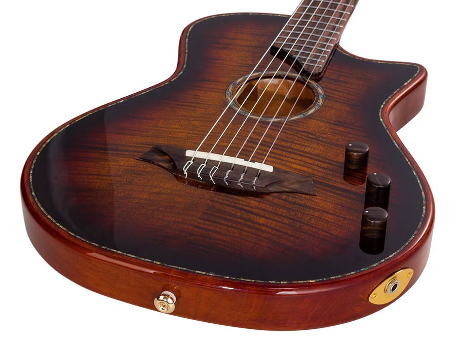 Met een massief sparrenhouten bovenblad afgewerkt met 5A-kwaliteit gevlamd okoume, een volledig uitgeholde mahoniehouten body en een innovatief, gevormd bracingsysteem, levert de gitaar een rijk en resonant geluid dat geschikt is voor thuis oefenen, terwijl feedback op het podium tot een minimum wordt beperkt. Gecombineerd met het hybride pickupsysteem van de gitaar – een piëzo-element onder de brug en een 3-kops transducer onder de brug met veelzijdige klankmogelijkheden – is deze gitaar een topkeuze voor optredens. artiesten.