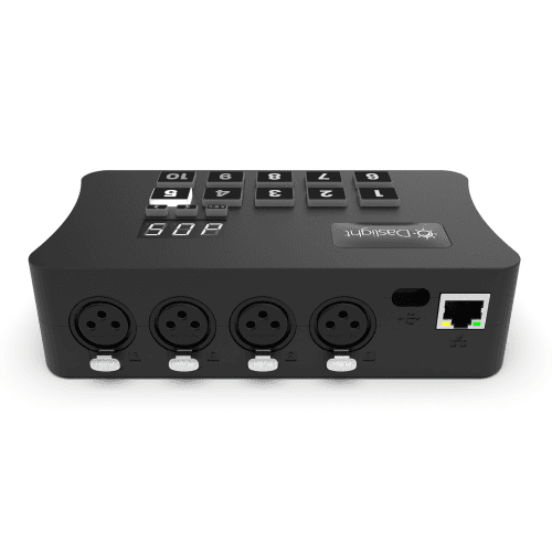 Daslight 4 kan worden gebruikt met elk DMX512-compatibel verlichtingsarmatuur. Lampen worden aan uw pc of Mac gekoppeld door een XLR-kabel aan te sluiten op een van Daslight’s DVC4 USB- of Ethernet DMX-interfaces.