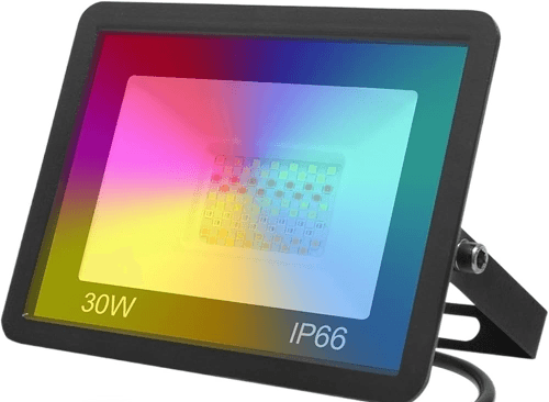 Een RGB waterdichte floodlight is een kleurrijke buitenlamp die fel licht in verschillende kleuren geeft en bestand is tegen regen. Ideaal voor sfeerverlichting of beveiliging rondom het huis.