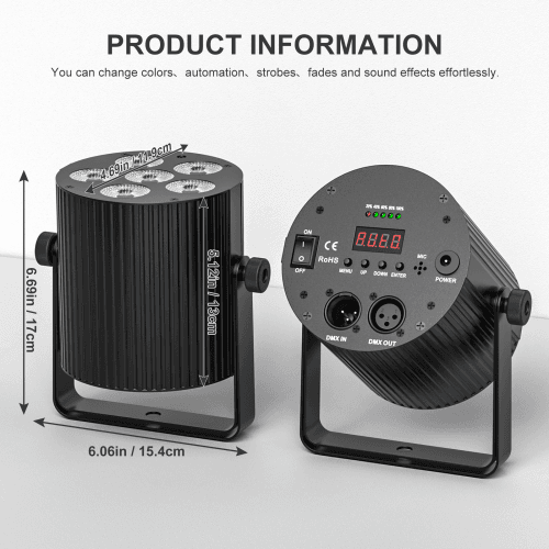 DJLicht 6x6W RGBWAUV met accu en afstandsbediening ronde ledpar