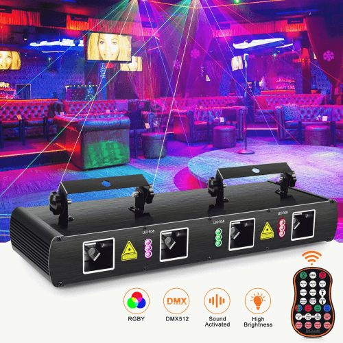 DJLicht laser RGBY met 4 stralen en afstandsbediening
