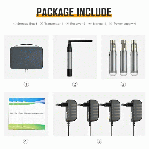 DJLicht Wireless DMX512 Transmitter and 3PCS Short Wireless Receiver