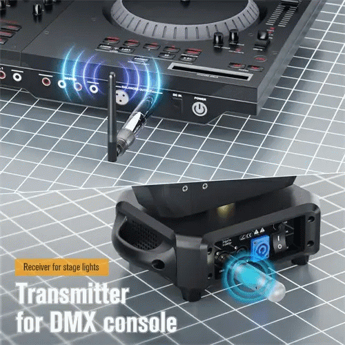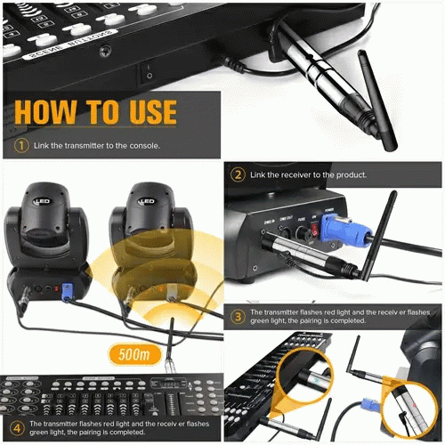 Besturingsmodus: aangestuurd door DMX512-console, de zender is aangesloten op de DMX-console, de ontvanger is aangesloten op de lamp.
