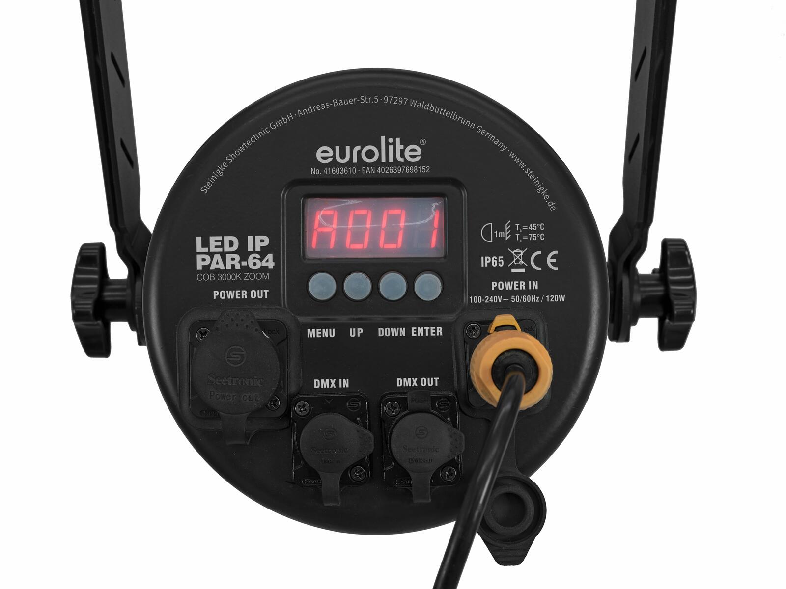 EUROLITE LED IP65 PAR-64 COB 3000K 100W Zoom black waterdicht