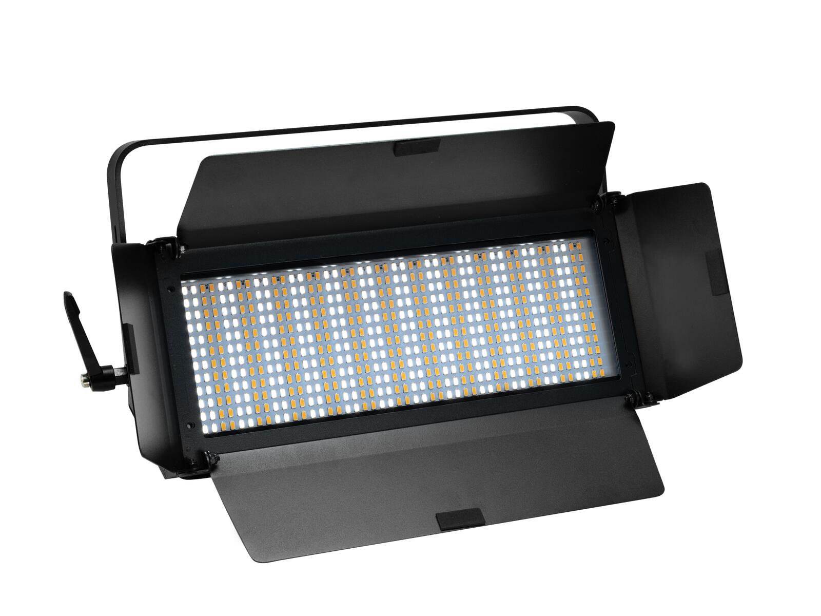 DMX-gestuurde opbouwlamp met 576 dubbele witte LED’s, QuickDMX-poort, diffuser en barn doors