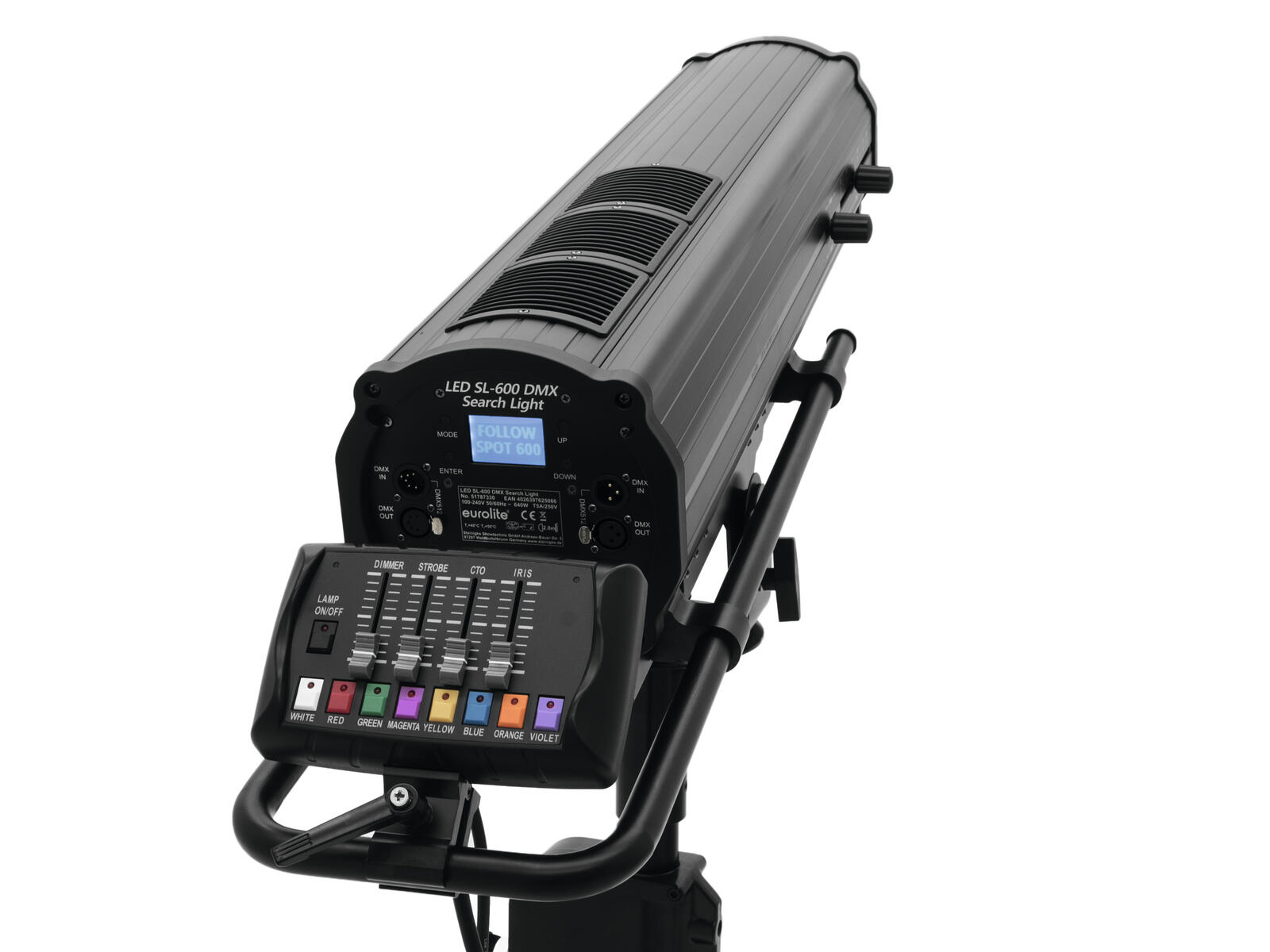 Volgspot met koudwitte 600 W LED voor lange afstanden, zoom, DMX