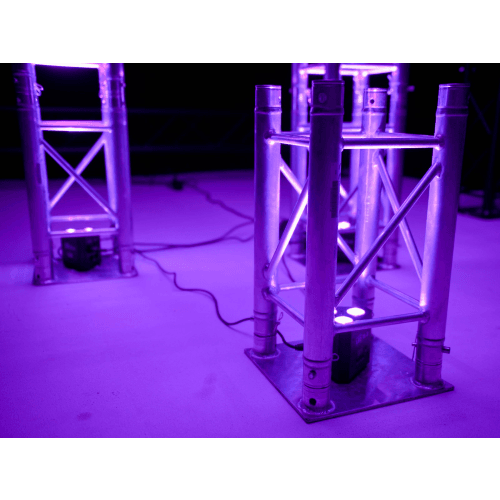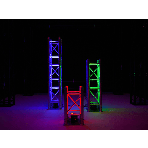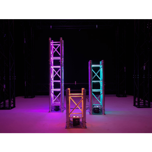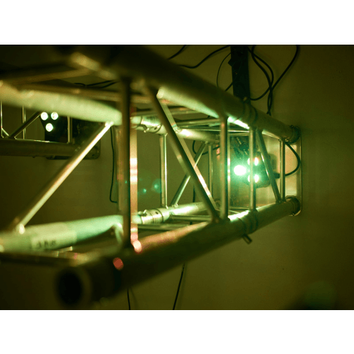 Ook aan boord zijn geïntegreerde showprogramma’s in auto- en muziekmodus, directe kleurselectie voor 17 kleuren, dimmer en stroboscoopeffect met variabel instelbare snelheid. De trusslight kan in master/slave-modus worden gebruikt.
