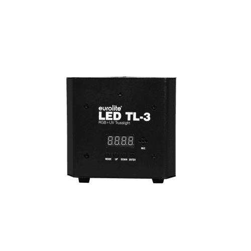 De flikkervrije EUROLITE TL-3 Trusslight is uitgerust met drie 7 Watt 4in1 LED’s elk in de kleuren rood, groen, blauw en UV. Hij is compact en krachtig en daardoor zeer geschikt voor truss, standbouw en podiummontage. De TL-3 past perfect bij het 3-puntssysteem ALUTRUSS DECOLOCK DQ3.