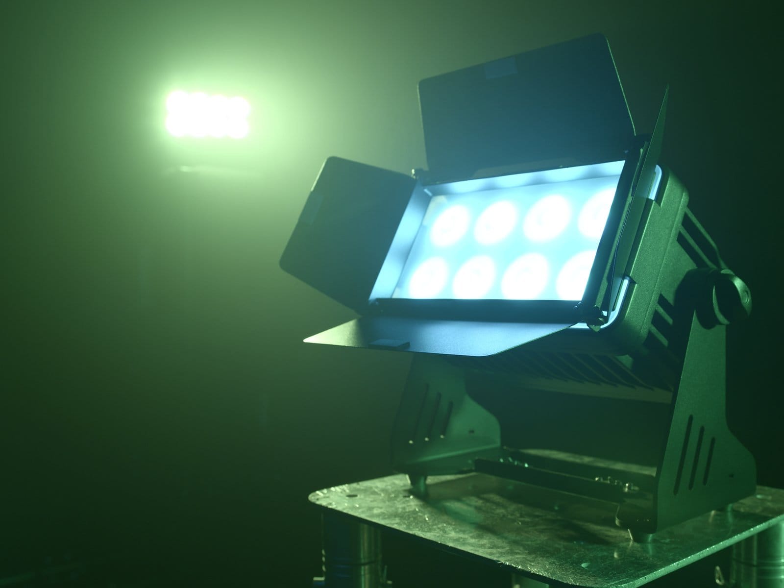 Stille IP65 LED-schijnwerper met RGBW-kleurenmenging, diffusorafdekking, staldeuren en IR-afstandsbediening