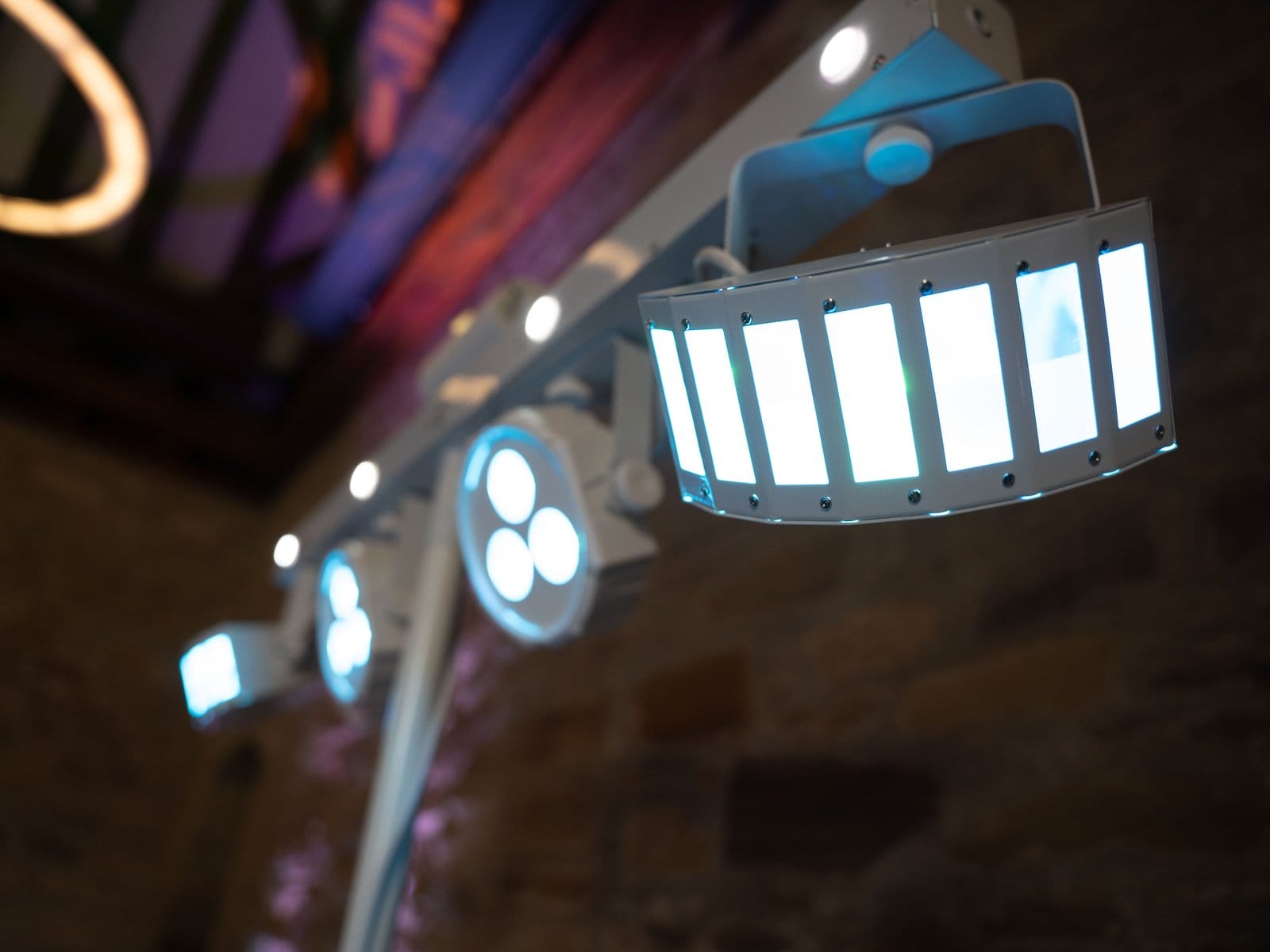 Bediening via stand-alone; DMX; IR-afstandsbediening; Geluid naar licht via microfoon; Draadloze voetschakelaar; Master/slave-functie