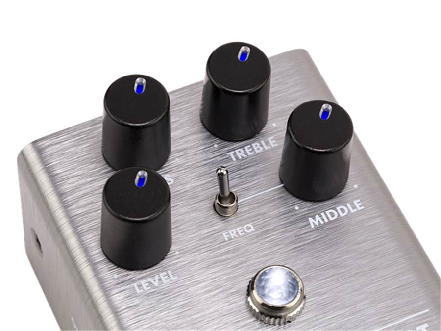 Soms wil je je geluid net dat beetje extra geven. Of je nu op zoek bent naar meer volume of een vollere toon, de Engager Boost is het ideale clean boost-pedaal. Met de ingebouwde 3-bands EQ kun je je toon vormgeven zodat hij goed door de mix heen snijdt, terwijl je met de Frequency-schakelaar het middenfrequentiebereik kunt selecteren, ideaal voor het nauwkeurig vormgeven van je toon. De Engager Boost is ook perfect om je signaal naar de voorversterker van een buizenversterker te boosten en je toon voller te maken. De True Bypass- en Buffered Bypass-modi zorgen ervoor dat dit pedaal in elke setup goed werkt.