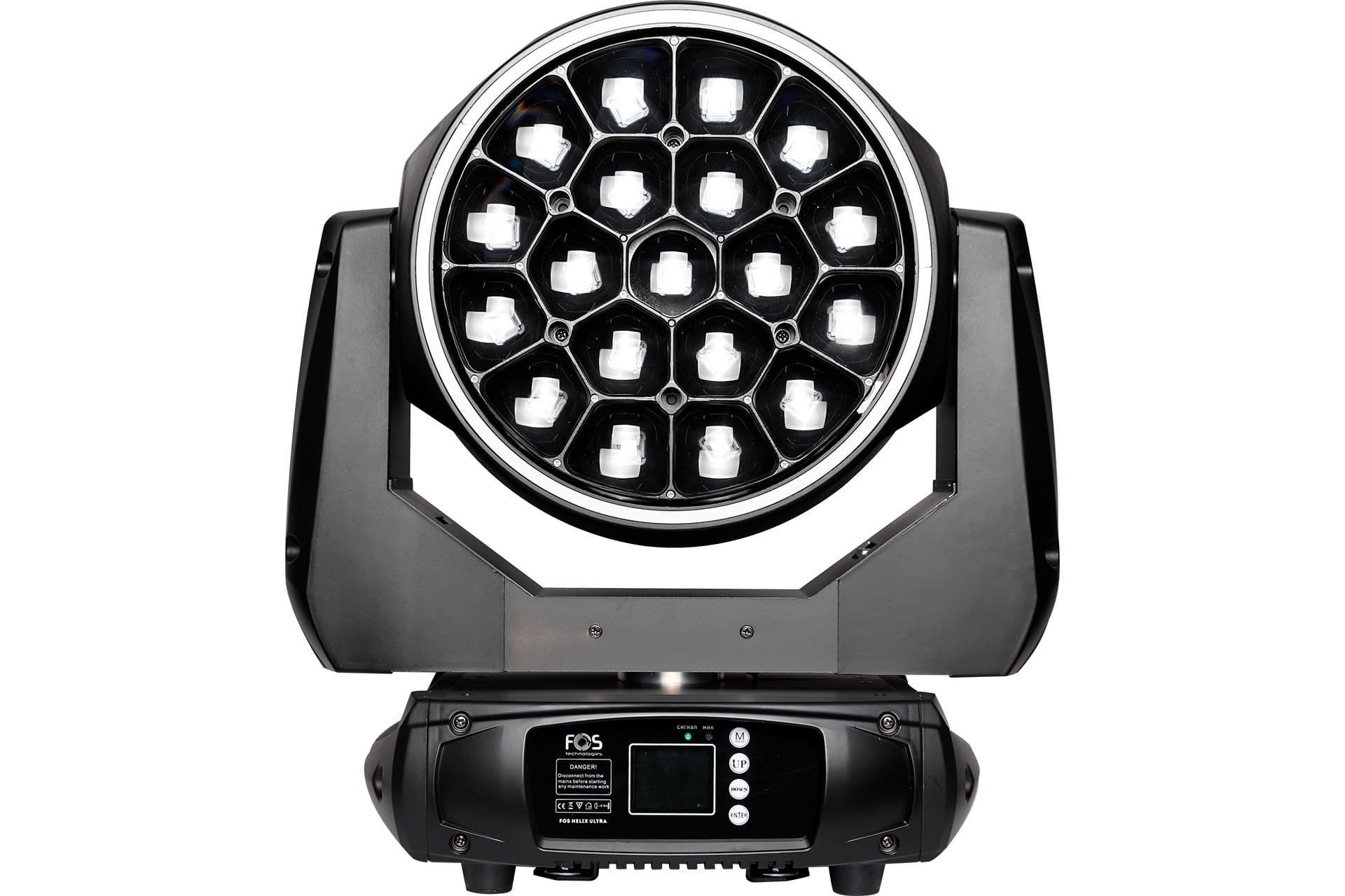 Krachtige wash led-armatuur met pixelring, 19×20 watt RGBW-leds die pixel voor pixel worden aangestuurd, lineaire zoom 4°-60° ronde led-ring met dynamische patronen, vortexeffect, kleurtemperatuurregeling, 28, 38, 102, 114 DMX-kanalen, theatermodus, 525x380x560 mm, 16 kg.