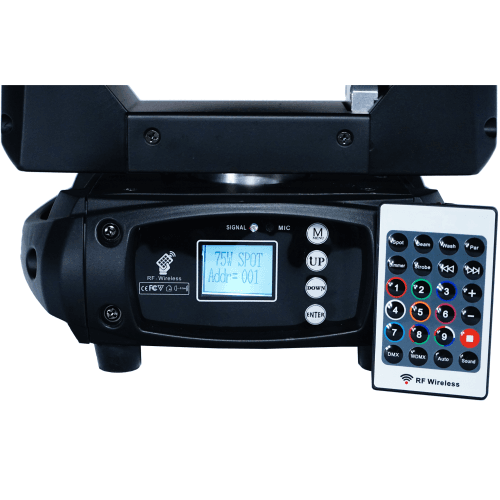Led 75watt Beam Moving Head, 14 kleuren, 17 gobo’s, 8 facetprisma’s met variabele snelheid en richting, fresnel-lens, powercon in/uit, 9/11 Dmx-kanalen.