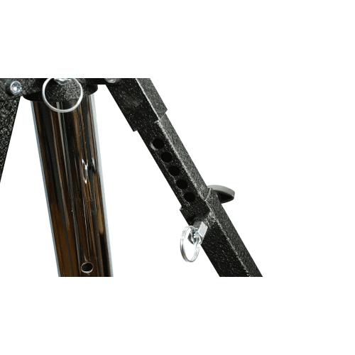 Eén van de drie poten is telescopisch, wat de installatie vlak en eenvoudig maakt via trappen of terrassen.
