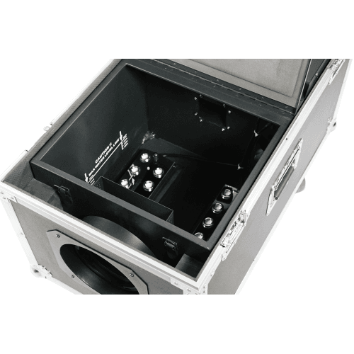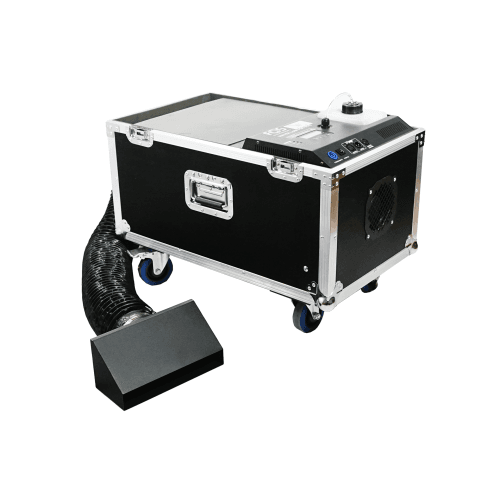 Professionele low fog machine, met flightcase. Het produceert laagliggende mist met de ultrasone vernevelingsmethode. Inclusief slang en uitlaatmondstuk. De hoofdtank wordt gevuld met ongeveer 10 liter water (het bovenste en onderste waterniveau zijn in de tank gemarkeerd). In de mistvloeistoftank voeg je het type (alleen op waterbasis) vloeistof toe dat je wenst*.