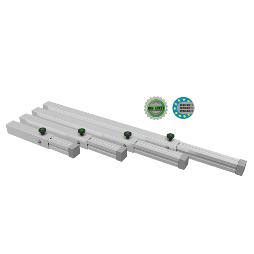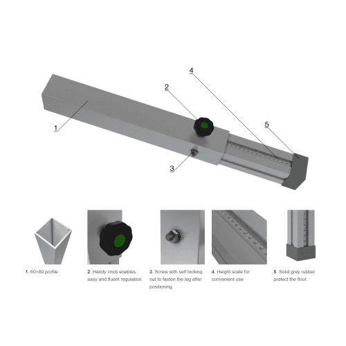 Professionele telescopische poten van 40 cm – 60 cm, profiel 60×60, hoogteschaal, zelfborgende schroef, grijs rubber.