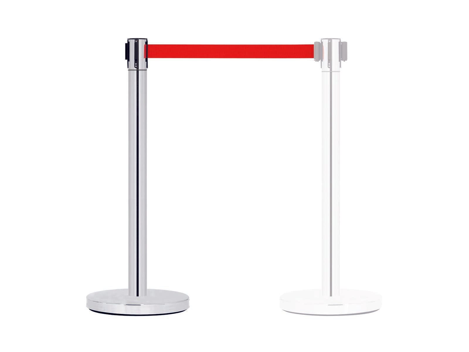 De palen van het afzetsysteem zijn gemaakt van roestvrij staal en zijn daardoor ook geschikt voor buitengebruik. Het materiaal is hoogglans gepolijst en ziet er zeer elegant uit. Het bandsysteem is zelfoprollend. Een band kan tot 3 meter worden uitgetrokken. De riemschijven zijn verwisselbaar en verkrijgbaar in de kleuren rood en zwart.