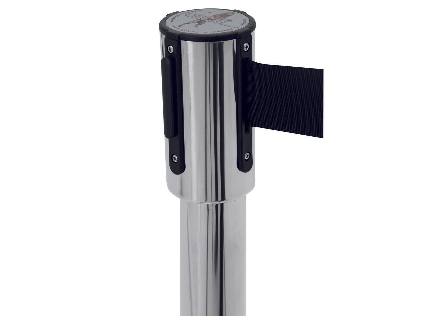 De palen van het afzetsysteem zijn gemaakt van roestvrij staal en zijn daardoor ook geschikt voor buitengebruik. Het materiaal is hoogglans gepolijst en ziet er zeer elegant uit. Het bandsysteem is zelfoprollend. Een band kan tot 3 meter worden uitgetrokken. De riemschijven zijn verwisselbaar en verkrijgbaar in de kleuren rood en zwart.