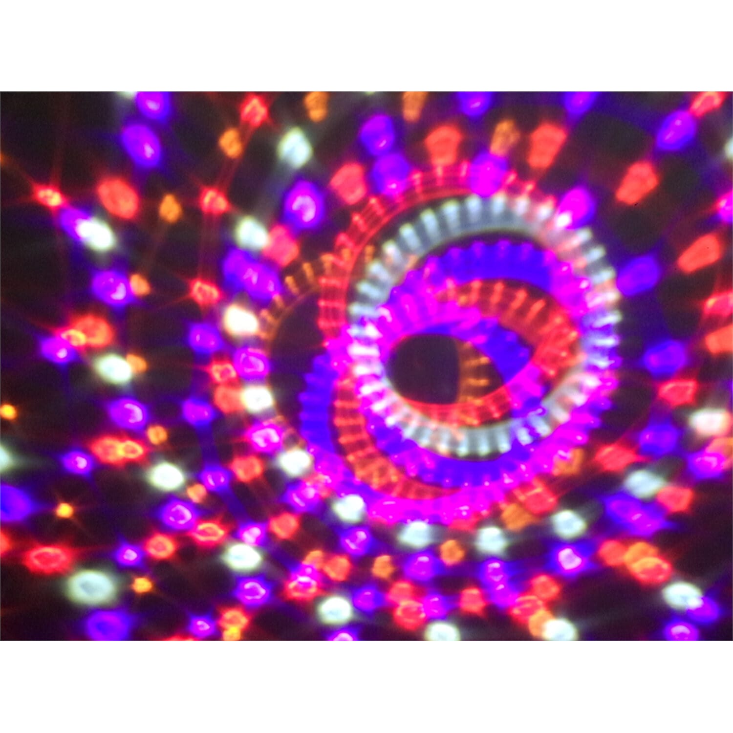 ASTRO effect fitted with 9x LEDs that projects colorful beams and moving circles on ceiling and walls.ASTRO effect met 9 led’s die kleurrijke stralen en dynamische cirkels op plafond en muren projecteren.