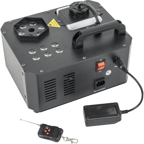 Deze indrukwekkende machine schiet enorme mistwolken op spectaculaire hoogten, verlicht door 2 groepen van krachtige RGB-LED’s. Met een vermogen van 1000 W genereert hij tot 850m3 mist per minuut. Het spreekt voor zich dat zelfs grote panden er geen grote uitdaging voor zijn!