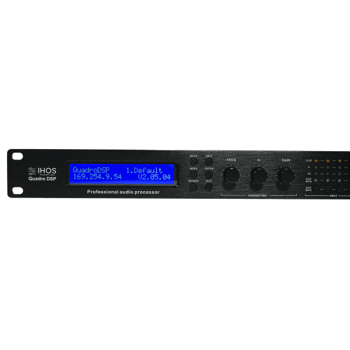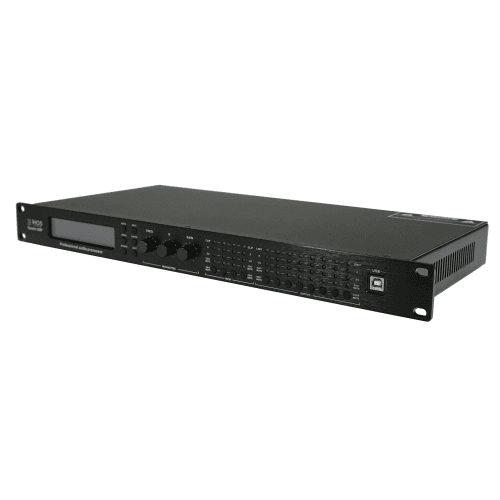 Professionele luidsprekerprocessor, met variabele DSP-functies en geïntegreerde compressoren, limiters, frequentiedelers, dynamische EQ, delays, equalizers, in- en uitgang met FIR-fasecorrectie en audiomixers.