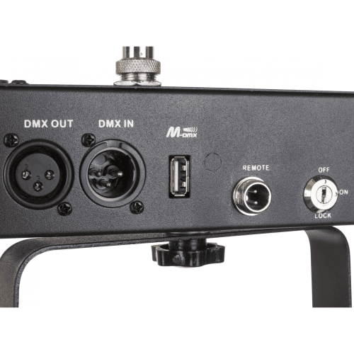 Controle : modes standalone sound, standalone automatic, remote, DMX, Master/Slave