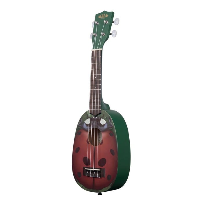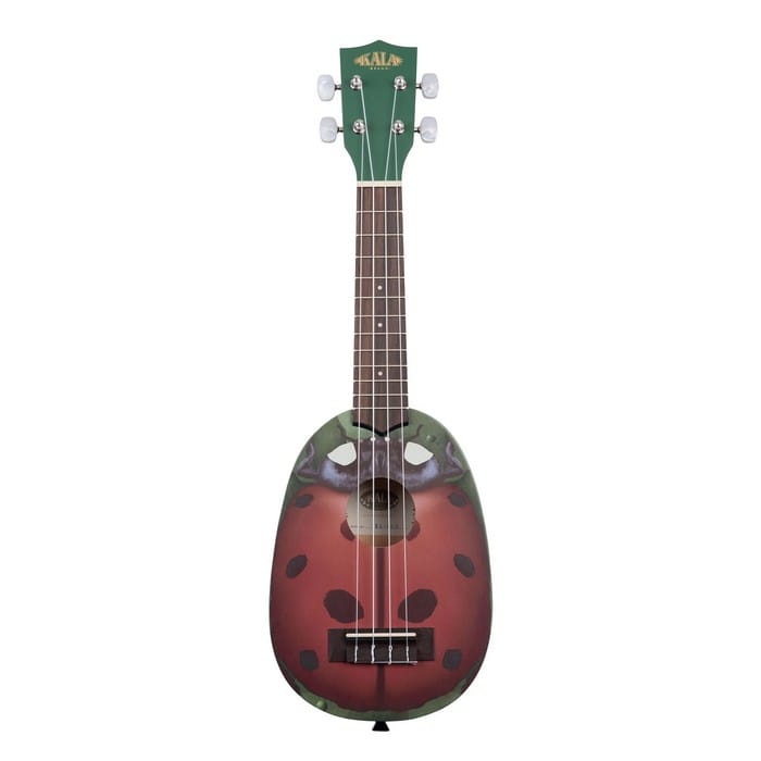 Alle ukeleles in de Novelty Series van Kala zijn van mahoniehout met een palissander toets en afgewerkt met zijdeglans en Aquila Super Nylgut snaren. Tevens hebben ze allemaal een pineapple vorm, ananas dus, en hebben hierdoor een iets groter volume. Alles bij elkaar krijg je een volle en warme klank. Voeg hier nog de speelse looks van deze ukeleles aan toe en je hebt een uke waar je geen ‘nee’ tegen kan zeggen. Zoals deze ‘ladybug’ dus.