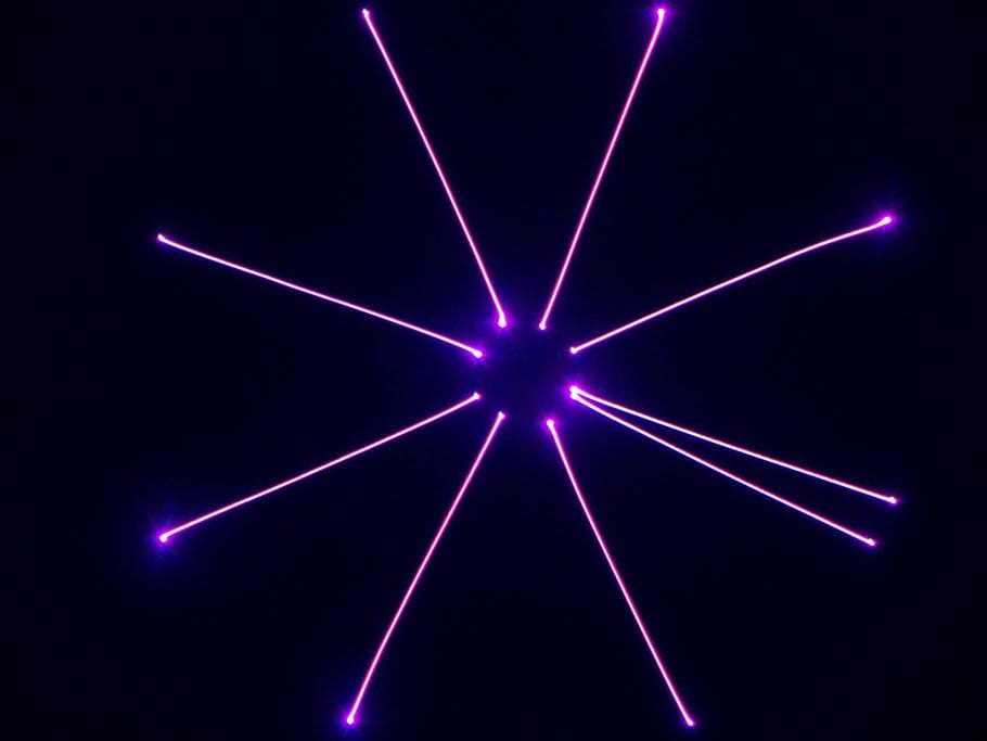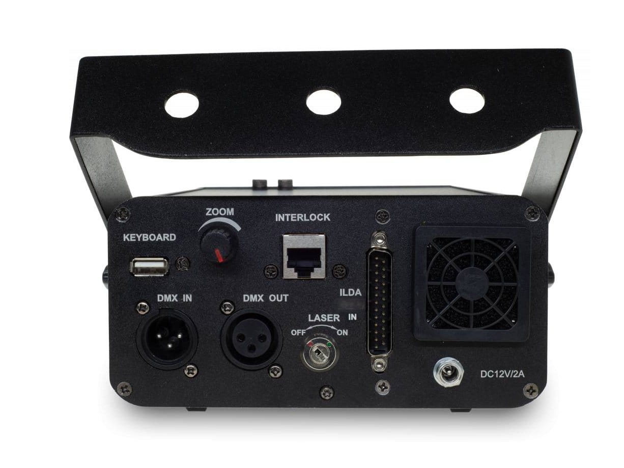 Veelkleurige en verbluffende witte lichtlaser met plug & play-bediening en ILDA & DMX-besturing die animatiegraphics, tekst, in-air beam, golven en tunneleffecten projecteert. Geleverd met afstandsbediening en toetsenbord voor live tekst en programmeerbare shows.