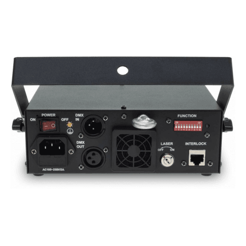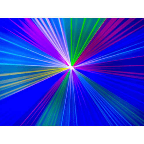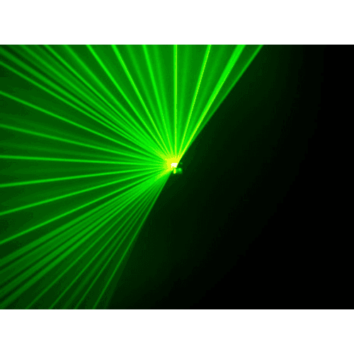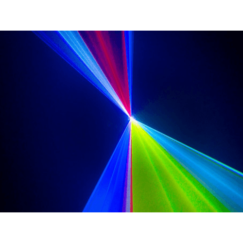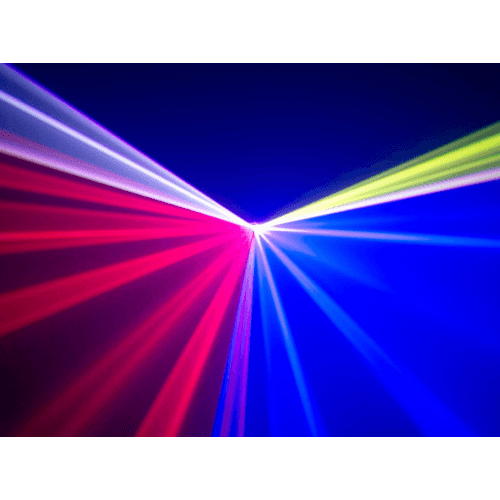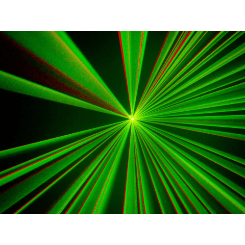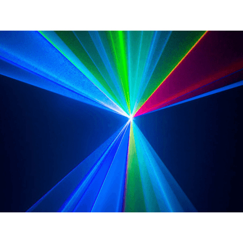 De rode diodelasermodule met een golflengte van 650 nm, de groene DPSS-lasermodule met een golflengte van 532 nm en de koningsblauwe lasermodule met een golflengte van 445 nm zorgen voor prachtige kleuren en helderheid. De balken hebben een diameter van ca. 4 mm en een straaldivergentie van ongeveer 1 mrad en de projector biedt snelle stappenmotoren, tot 2-5 kpps, evenals een scanhoek tot 30°. Ongeveer ca. 50 (lagen, tunnels, hekken, golven etc.) kunnen via DMX worden aangestuurd. Er zijn ook een geluid-naar-licht-modus en een stand-alone-modus beschikbaar. Voor de geluid-naar-licht-modus kan de gevoeligheid van de geïntegreerde verstelbare microfoon worden aangepast.