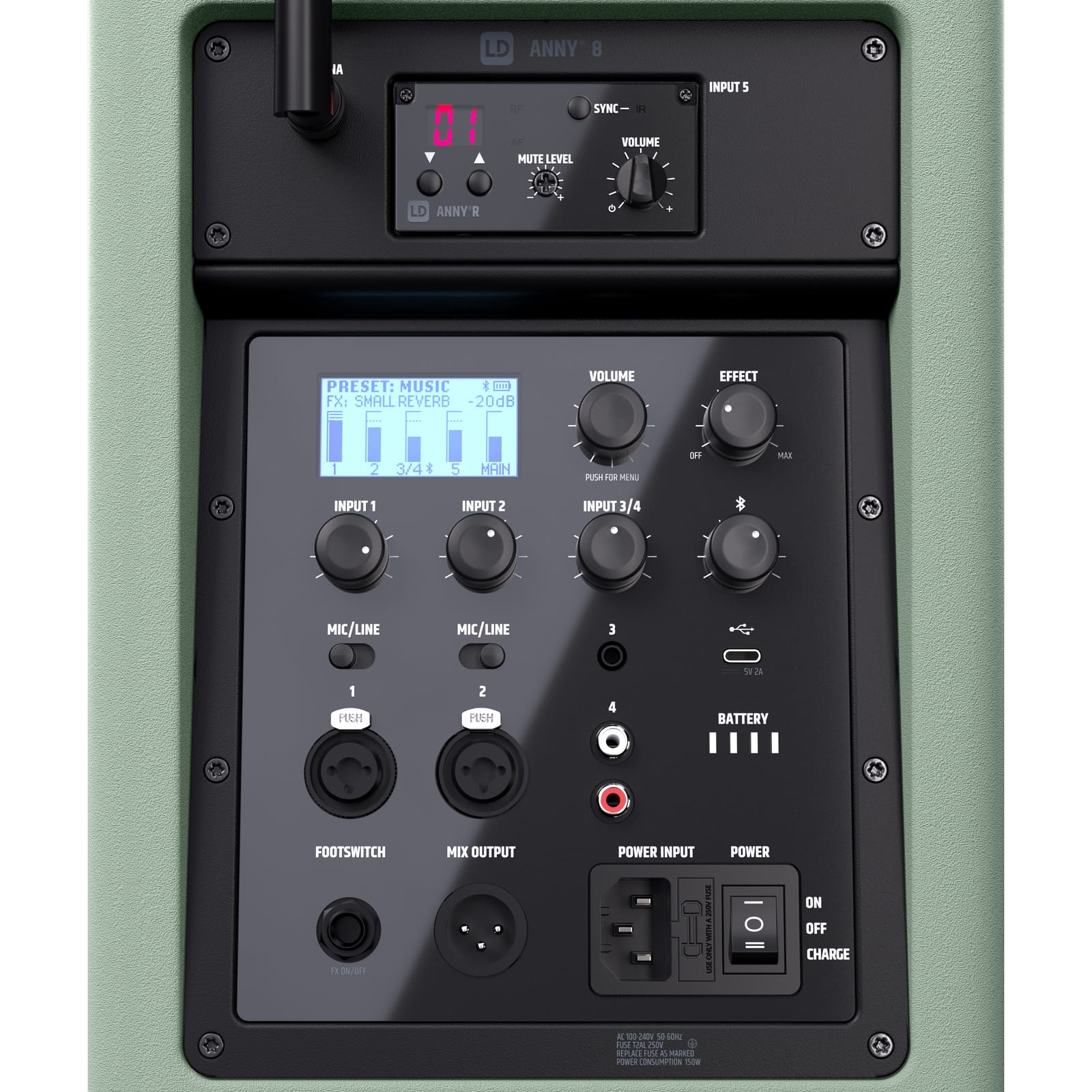 Het idee van de toepassing van een accu-luidspreker is dus dat je overal je eigen PA-versterking hebt, ook als er geen stopcontacten zijn. Dat zou een pleintje kunnen zijn, een grasveldje, het bos (wel erop letten dat je Knabbel en Babbel niet verjaagt) of waar dan ook. De bouw is wat kleiner dan die van de grotere ANNY 10, de woofer is in de ANNY 8 namelijk kleiner, alhoewel 8 inch geenszins te klein is. Zeker als het om publiek spreken gaat heb je de diep dreunende frequenties toch niet nodig.