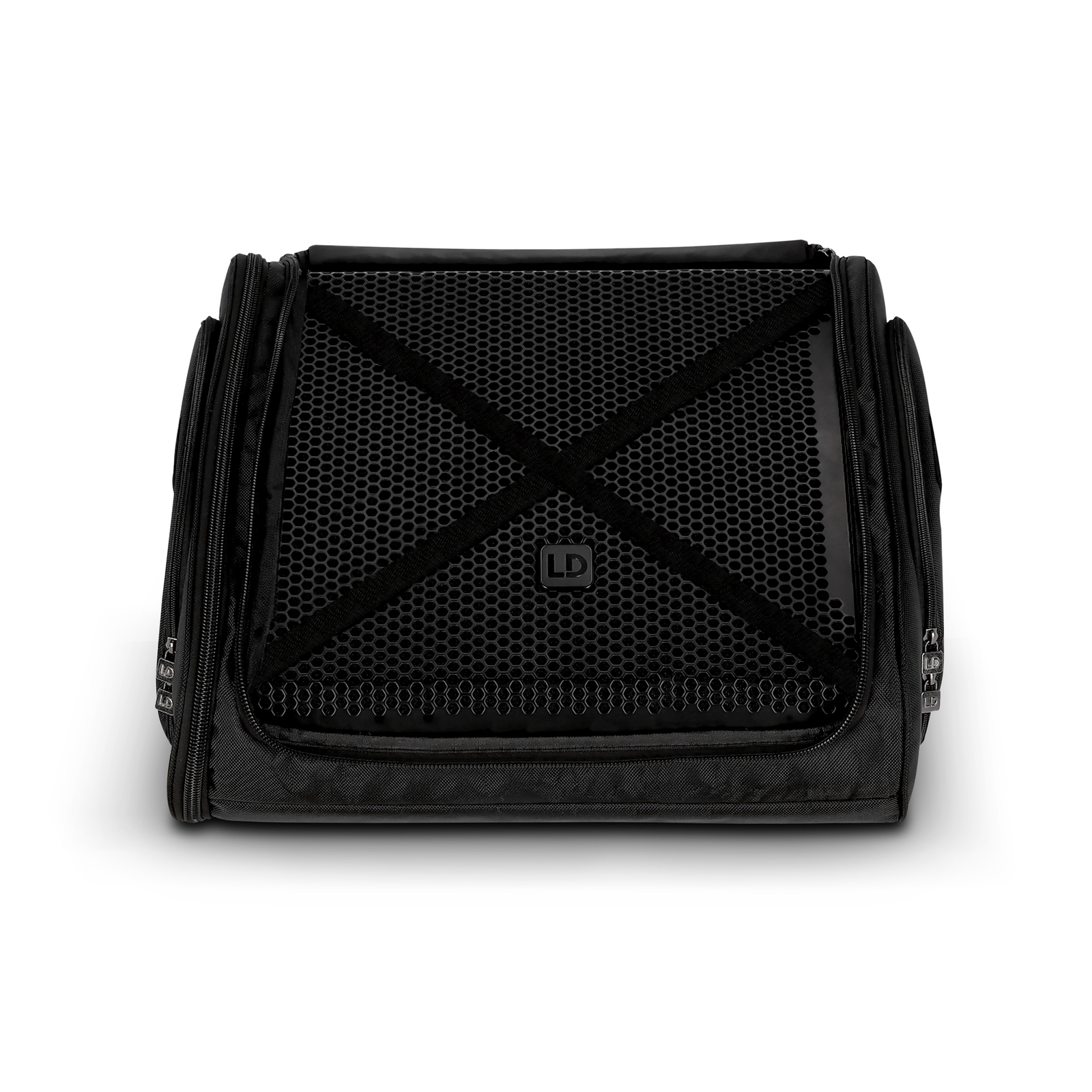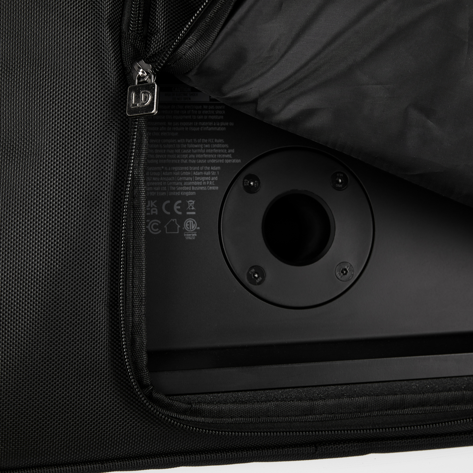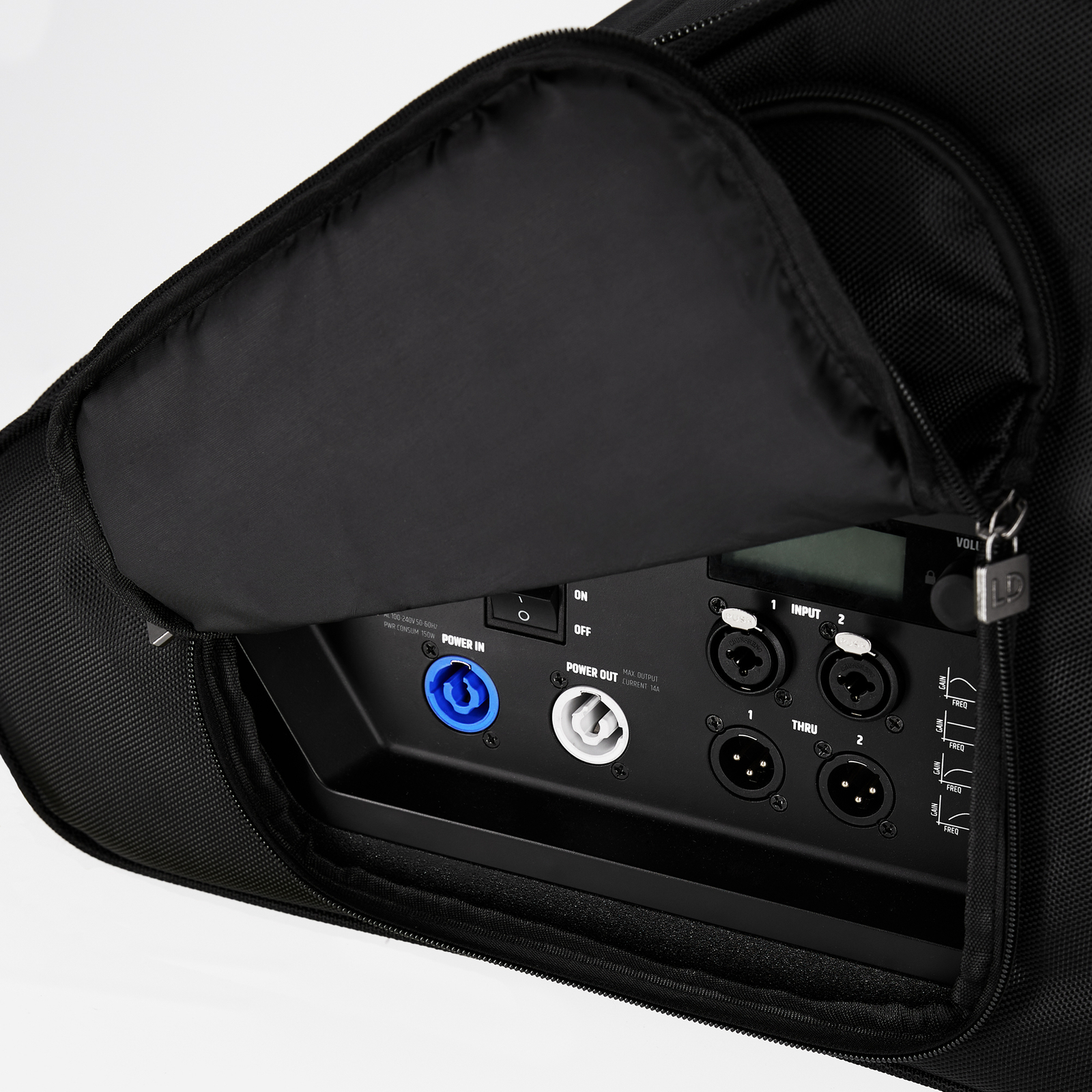 De grote oprolbare opening aan de voorkant en de zijkleppen maken optimaal gebruik van de monitor mogelijk met de beschermhoes. De uitsparingen voor handgrepen, bedieningspaneel, aansluitingen, luidsprekerstandaardflens en koellichaam hebben elk een eigen klep. Deze kleppen worden gesloten met een rits en kunnen met klittenband open worden gehouden om de monitor optimaal te beschermen en toch te kunnen bedienen.