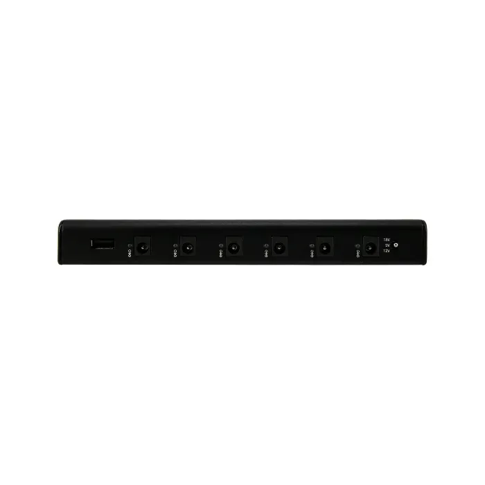- kan stroom verzorgen voor 5 effectpedalen van 9V en één variabel van 9V, 12V of 18V.