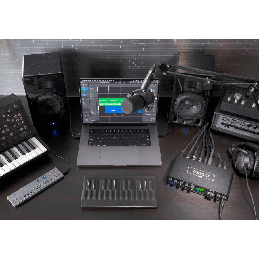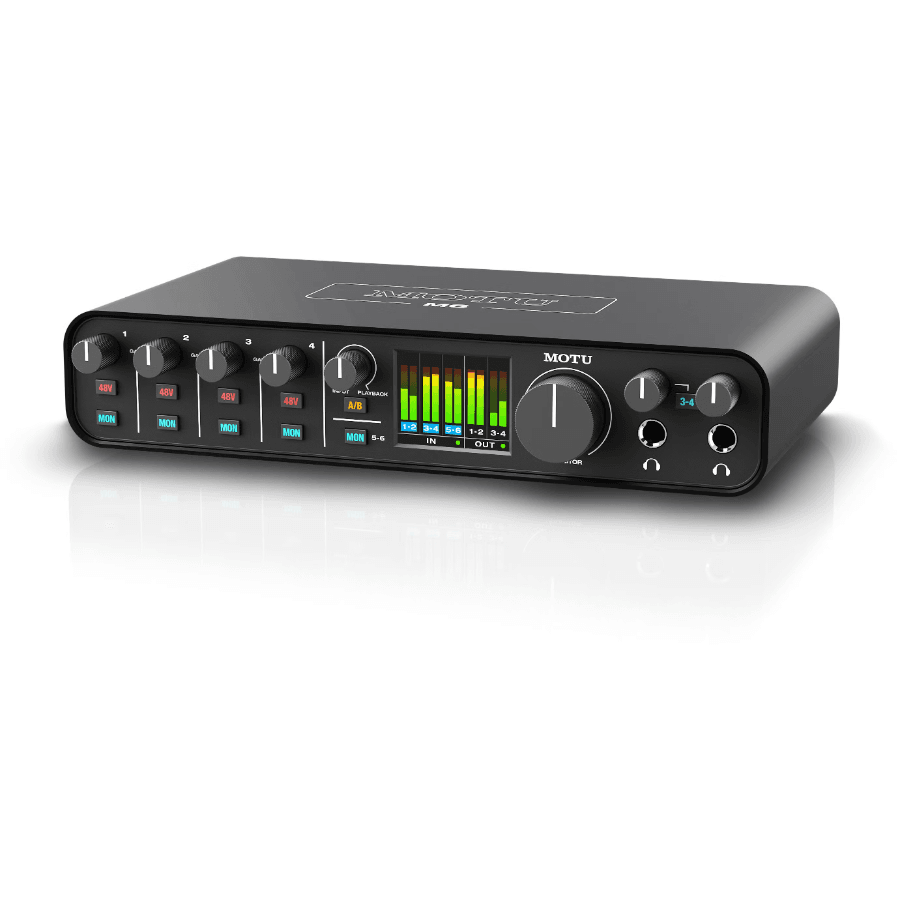 Motu brengt ons met zijn M6 de volgende iteratie interfaces in de M-serie. Best in class is in dit geval niet zo maar een marketingterm, aangezien je een top conversie krijgt naast een kleuren display en meer dan voldoende i/o voor de enthousiaste opname-artiest/home recording producer. Zoals de naam impliceert, beschikt de M6 over zes ingangen en vier uitgangen. Vier ingangen beschikken over combi XLR/jack microfoon/line-aansluitingen. Ook erg handig zijn de twee hoofdtelefoonuitgangen die je in staat stellen twee verschillende mixages te laten monitoren. Naast de vier combi-ingangen, zijn er nog twee dedicated line-ingangen voor je synthesizers of andere line-instrumenten beschikbaar. Over synths gesproken; mocht je een vintage synth hebben dan kun je deze gewoon aansluiten met een MIDI-kabel aangezien de M6 een MIDI-in- en uitgang bezit.