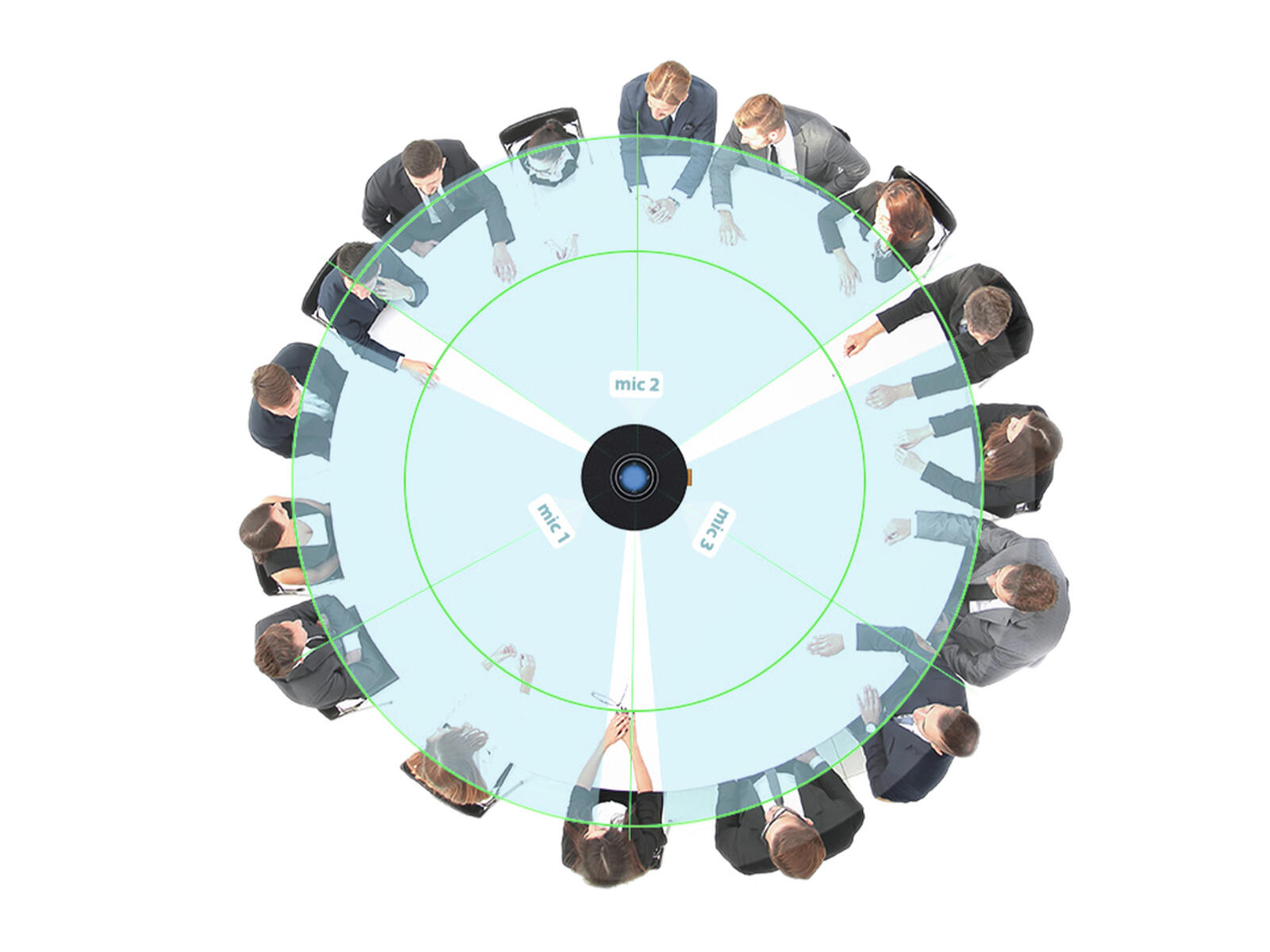 Fantastisch 360° full-range geluid: 3 omnidirectionele microfoons vangen efficiënt geluid op binnen een straal van 3 meter, waardoor deelnemers vanuit alle hoeken duidelijk kunnen horen en gehoord worden. U kunt dus opstaan en rondlopen – geen enkel woord gaat verloren.