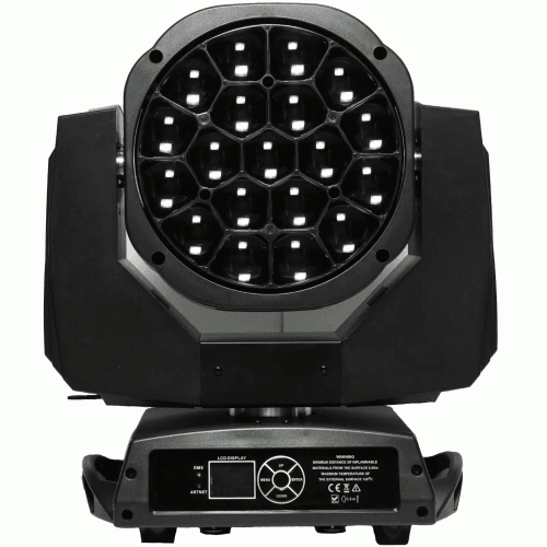 Multifunctionele bewegende kop gebruikte 19 Osram LED’s van elk 15 W met nauwkeurige en verzadigde kleuren. Armatuur omvat functies als Wash, Wash-beam en caleidoscoop dankzij de dubbele rotatielens. Het brede instelbereik van de stralingshoek, pixel-shaping en pixel-mapping bieden onbeperkte mogelijkheden voor het creëren van lichtshows