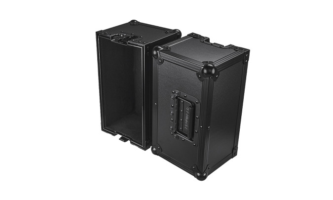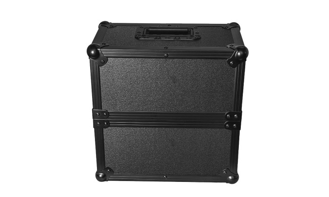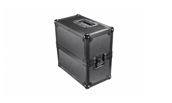 Om je 12 inch-vinyls veilig op te bergen en te transporteren is er de Prodjuser 12 Record case. Maar liefst 50 records kun je in deze case kwijt en dat betekent dat een flink optreden absoluut gegarandeerd is. De Prodjuser 12 Record is in het zwart uitgevoerd en bescherming wordt geboden middels 6 mm dik hout. Daarnaast zijn er brede aluminium profielen en bolhoeken aangebracht voor extra robuustheid. Openen en sluiten doe je middels vlindersloten en voor het optillen heb je een verzonken handgreep ter beschikking. De genoemde onderdelen zijn allemaal afkomstig van Penn Elcom, dus ook daar zit het met de kwaliteit helemaal goed.