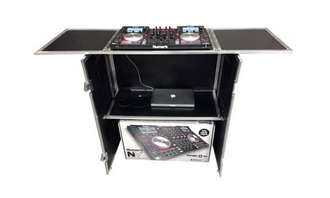 De DJ stand biedt ruimte aan een stevige mixer en twee table top CD spelers of draaitafels. Onder het blad zit een apart plateau, waarop een versterker of randapparatuur geplaatst kan worden.