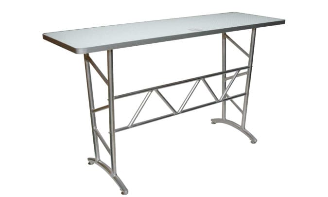 Deze tafel, gemaakt van aluminium truss, mag er zeker zijn! Zeer mooi vormgegeven tafel van Prodjuser, die geschikt is voor allerhande toepassingen, waaronder als tafel voor uw DJ set!
