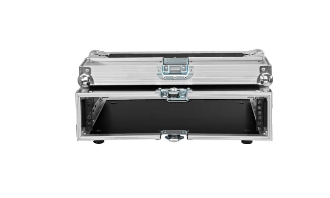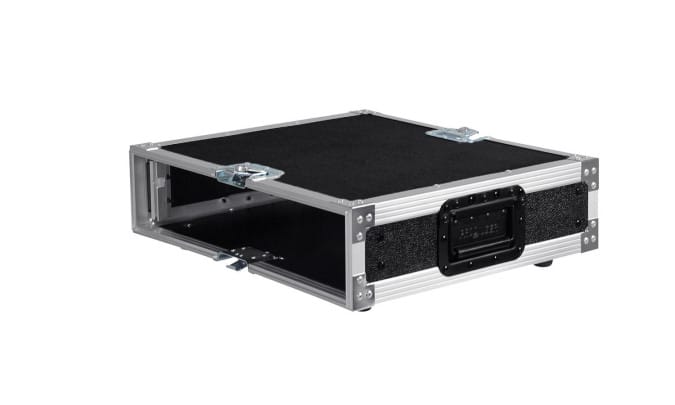 Een heel stevige en betrouwbare flightcase, deze van Prodjuser. Het is een zogenoemde double-door flightcase, dus zowel te openen aan de voor- en achterkant en ideaal voor het inbouwen van je eigen 19 inch apparatuur. Wat betreft stevigheid noemen we bijvoorbeeld het materiaal, namelijk 9 mm dik multiplex, afgewerkt met een harde toplaag en verder de verschillende Penn Elcom onderdelen, zoals aluminium profielen, balhoeken, vlindersloten en handgrepen. Tenslotte is deze variant 2U hoog en heeft hij een diepte van 45.7 centimeter.