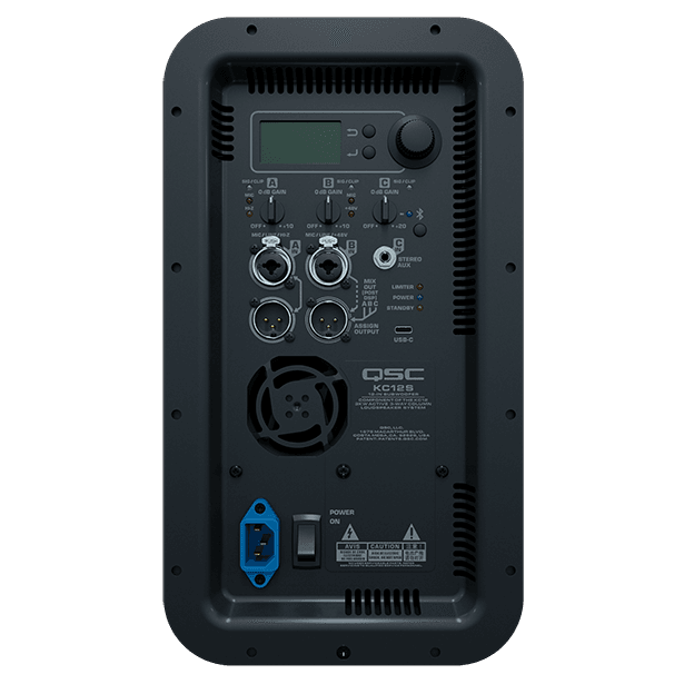 - 3-way loudspeaker system featuring a 12-inch (305 mm) subwoofer, two high-excursion 4-inch (102 mm) midrange drivers and a 1-inch (25.4 mm) HF compression driver combined with the proprietary QSC LEAF™ waveguide.