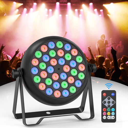 Via DMX te bedieden of via de afstandsbediening met 3 standaard programma’s of via geluidgestuurd.