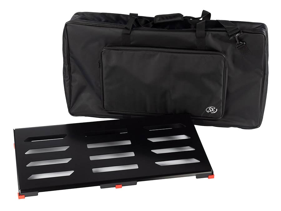 Pedalboard van aluminiumlegering, 80x41x9 cm, inclusief stevige draagtas Nettogewicht: 2,95 kg 12 kabelbinders van 15 cm 1,5 m klittenband